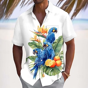 Bărbați Papagal Plante tropicale Flori Cămașă hawaiană Camașă cu nasturi Cămașă Aloha Manșon scurt Hawaiană Casual Vacanță Vară Primăvară Răsfrânt Imprimare 3D cămăși cu guler Un buzunar frontal Alb