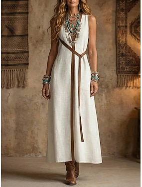 Pentru femei Rochie Maxi In din bumbac artificial Rochie Boho Rochie leagăn Elegant Modă Modern În aer liber Concediu Ieșire Fit regulat Bloc Culoare Fără manșon Guler mandarin Alb Galben Roșu Vin