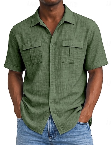 Bărbați Cămașă Cămașă de in Cămașă de vară Cămașă de plajă Culoare solidă Casual Zilnic Trifoi Gri Deschis Albastru Deschis Manșon scurt Guler Întors Vară Primavara vara Îmbrăcăminte Buzunar