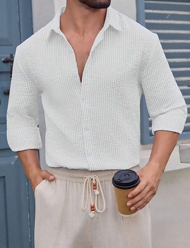 Bărbați Cămașă Cămașă casual Cămașă Seersucker Albastru piscină Alb Roz Îmbujorat Gri Albastru Deschis Manșon Lung Dungi Guler Cămașă Casual Zilnic Nasturi Îmbrăcăminte Elegant Modă Casual