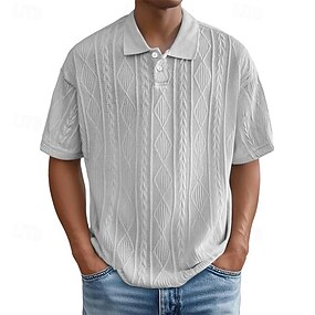 Bărbați Polo Texturat Casual Vacanță Rever Manșon scurt Modă Modern Simplu Fermoar Buzunar frontal Vară Primăvară Fit regulat Negru Alb Kaki Gri Albastru Deschis Polo