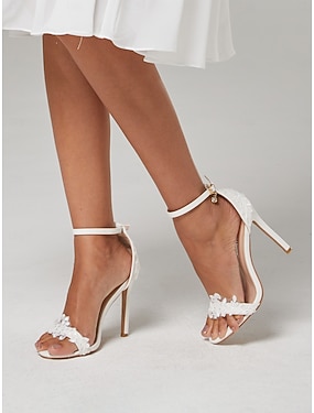 tocuri de mireasa stiletto din dantela alba, cu bareta la glezna si varf deschis – pantofi de mireasa eleganti pentru nunti si ocazii formale