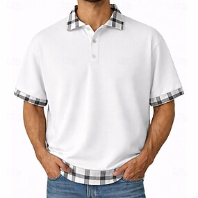 Bărbați Tricou polo din amestec de bumbac Cămașă de golf Casual Concediu Rever Manșon scurt Modă De Bază Tartan / Carouri Peteci Buzunar Vară Fit regulat Alb Portocaliu Kaki Gri Închis Albastru