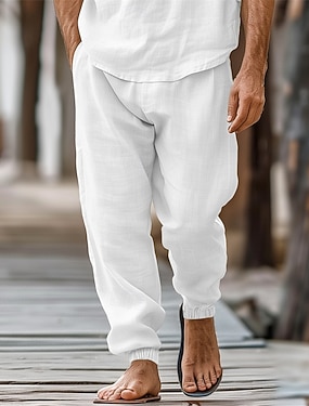 Bărbați Pantaloni de in Pantaloni Pantaloni de vară Pantaloni de jogging Talie elastică Picior drept Ridicare înaltă Culoare solidă Simplu Confort Respirabil Lungime totală Nuntă Concediu Vacanță Modă