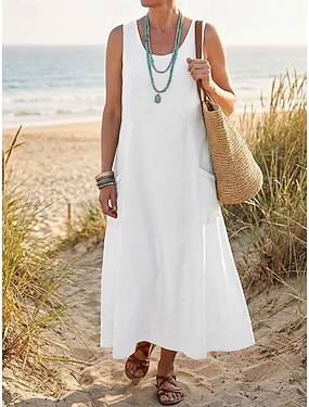 Pentru femei Rochie Lunga Rochie Maxi In din bumbac artificial Rochie de schimb Rochie de Vară Rochie casual Elegant Modă Modern Zilnic Vacanță Ieșire Fit regulat Potrivire Largă Simplu Fără manșon