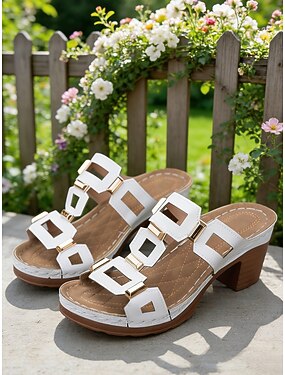 Sandale albe pentru femei, cu vârful deschis și toc bloc – sandale confortabile de vară cu slingback, pentru petreceri, grădină și purtare zilnică