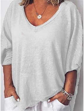 Pentru femei Supradimensionate Tricou Tricouri Culoare solidă Epocă Stilat Casual Lungime Manșon 3/4 Stil Nautic Topuri obișnuite Zilnic Ieșire Alb Roz Îmbujorat Roșu-aprins Trifoi Gri Vară Primăvară