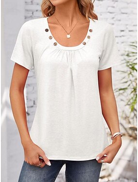 Pentru femei Tunică Nasturi Simplu Stilat Manșon scurt Stil Nautic Topuri obișnuite Zilnic Alb Roz Îmbujorat Kaki Gri Vară Primăvară Toamnă