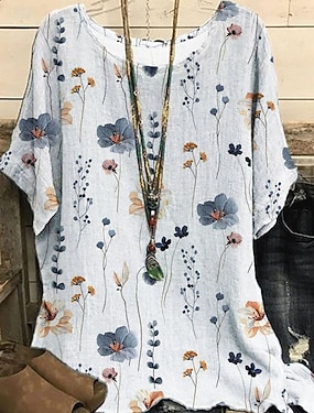 Pentru femei Tricou Imprimeu Floral Grafic Epocă Stilat Clasic Manșon scurt În V Topuri lungi Casual Zilnic Ieșire Albastru piscină Verde salvie Alb Mov Vară Primăvară