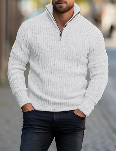 Bărbați Rochie Pulover Îmbrăcăminte tricotată Plover Striat Tricotat Fermoar Tricotat Simplu Quarter Zip Păstrați-vă cald Contemporan modern Purtare Zilnică Ieșire Îmbrăcăminte Toamna iarna Negru Alb