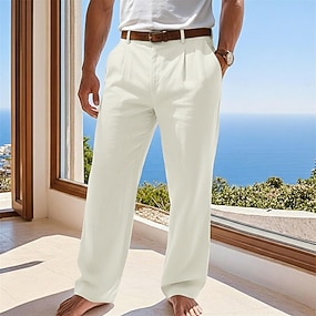 Bărbați Costume Pantaloni de in Pantaloni Pantaloni de vară Nasturi Buzunar frontal Picior drept Simplu Confort Respirabil Casual Zilnic Concediu Modă De Bază Alb Bej