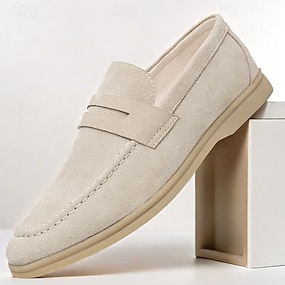 mocasini casual bej de piele intoarsa pentru barbati – pantofi confortabili pentru purtarea de zi cu zi si ocazii relaxate