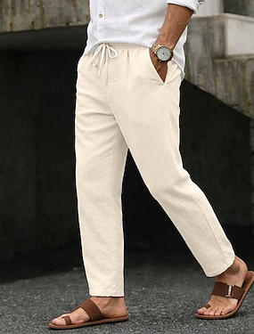 Bărbați Pantaloni de in Pantaloni Pantaloni de vară Cordon Talie elastică Picior drept Simplu Confort Respirabil Lungime totală În aer liber Casual Zilnic Modă Retro / vintage Bej