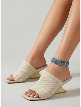 sandale de damă bej cu pană – sandale elegante de vară cu slip-on cu curele cu cataramă pentru ținute casual și de plajă