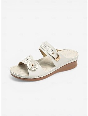 Sandale albe cu platformă, decorate cu perle și motive florale, pentru femei – sandale casual elegante, potrivite pentru vară, în aer liber și pentru vacanță
