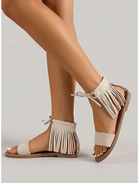 Pentru femei Vacanță festival de muzică Franjuri Toc Drept Vârf rotund Boemia Vacanță Piele de Căprioară Imitație Dantelat Negru Maro Bej