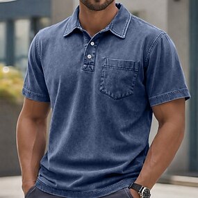 Bărbați Cămașă cu spălare acidă Tricou polo din bumbac Casual Afaceri Guler polo cu nervuri Manșon scurt Modă De Bază Culoare solidă Bloc Culoare Nasturi Spălat Vară Primăvară Primăvara & toamnă