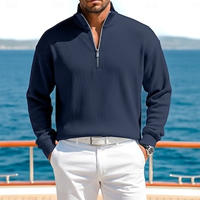 Bărbați Polo Tricouri polo Vacanță Stradă Quarter Zip Manșon Lung Modă De Bază Σταυρός Peteci Imprimare Toamnă Iarnă Potrivire Largă Albastru piscină Caisă Negru Alb Roșu-aprins Bleumarin Polo