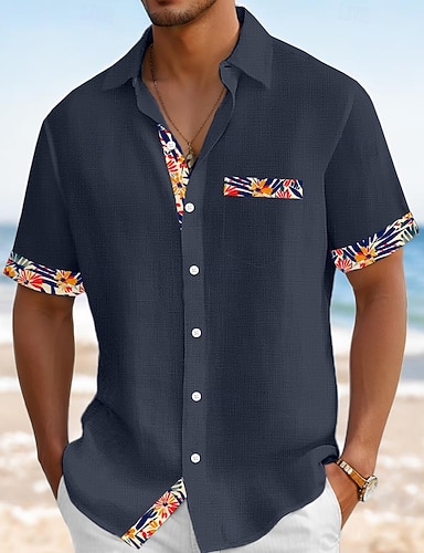 Bărbați Cămașă Cămașă de in Cămașă de vară Costum de plajă Camașă cu nasturi Imprimeu floral Vacanță Curise Alb Bleumarin Trifoi Kaki Manșon scurt Guler Vară Primavara vara Îmbrăcăminte