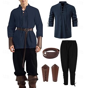 Medieval Renascentist secolul al 17-lea Arme si Armuri Ținute Cămașă Pirat Cavaler Viching Ranger elfică Costume de fancy Bărbați Viching Fantezie Halloween Carnaval Performanță LARP Ren Faire Adulți