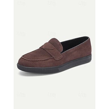Pantofi sport casual bărbătești din piele întoarsă maro, pantofi de mireasă eleganți pentru mire și cavaleri de onoare, încălțăminte formală confortabilă pentru nunți și recepții semi-formale