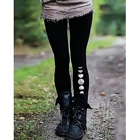 Pentru femei Viching chinez Jambiere Colanți confortabili Vacanță Casual Lungime totală Talie Înaltă MOON Imprimare Termic cald Comfortabil Strech Casual Zilnic Vacanță Negru Toamnă Iarnă Slim Fit