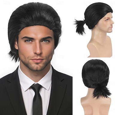 Peruci Sintetice Drept plaited Fâșie Cu breton Cu Codițe Realizat la mașină Perucă 14 inci Negru Păr Sintetic Bărbați Clasic Comfortabil Rafinat Negru