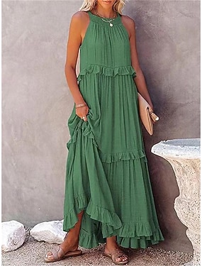 Pentru femei Rochie casual Rochie Maxi Bufantă Buzunar Dată Vacanță Șic Stradă Maxi Gâtul halter Fără manșon Roz Îmbujorat Trifoi Albastru Închis Culoare
