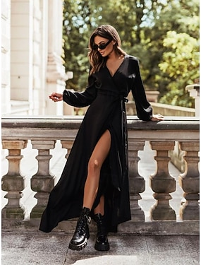 Pentru femei Rochie Maxi Rochie neagra Rochie de Cocktail Rochie formala Rochie simplă Casual Stradă Dată Potrivire Largă Simplu Manșon Lung În V Negru Alb Roz Îmbujorat Maro Primăvară Toamnă
