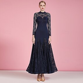 Dans de Societate Rochie Dantelă Pliuri Pentru femei Petrecere Antrenament Performanță Manșon Lung Înalt Nailon Celofibră Elastan