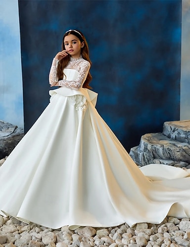 Rochie de fată florareasă lungă până la podea pentru prima comunie rochie drăguță de bal din bumbac cu dantelă cu fustă petală potrivită pentru vârstele 3-16 ani rochie care impresionează