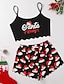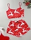 pijamale de Crăciun pentru femei, lenjerie de casă, set de pijamale, pantaloni scurți de pijama, modă, simplu, casual, grafic, desene animate, Moș Crăciun, pantaloni scurți, acasă, pat, fără mâneci,
