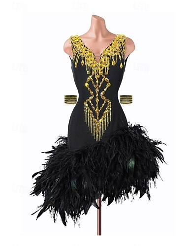 Dans Latin Rochie Piatră Semiprețioasă Pană / Blană Pentru femei Petrecere Antrenament Performanță Fără manșon Spandex Nailon