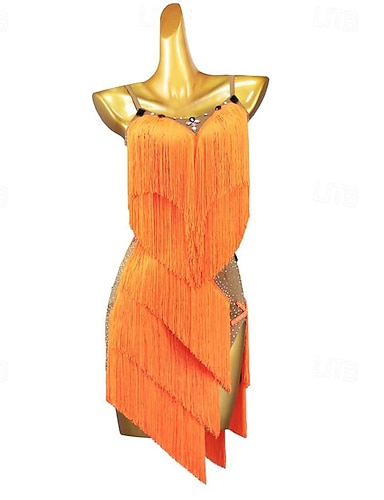 Dans Latin Imbracaminte de dans exotice Dansul salsei latine Rochie Franjuri Despicare Pentru femei Performanță Purtare Zilnică Fără manșon Chinlon