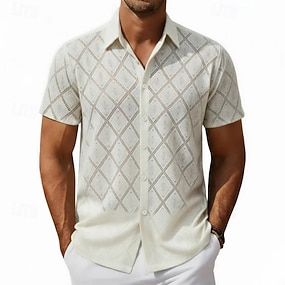 Bărbați Cămașă Textură Cămașă casual Camașă cu nasturi Negru Alb Albastru Deschis Manșon scurt Simplu Guler cubanez Casual Zilnic Dantelă Îmbrăcăminte Elegant Modă Casual