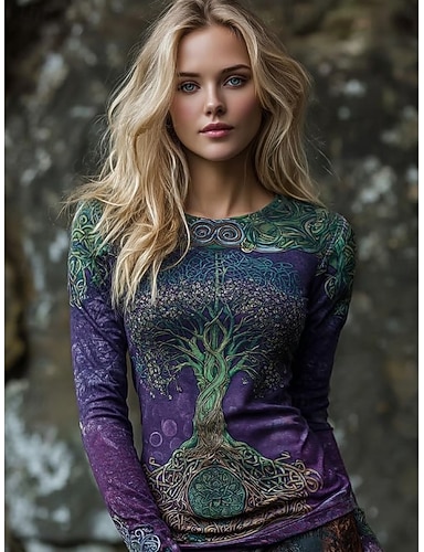 Tricou Boho de Femei grafic viking vintage modă Bohemia stil vintage cu mânecă lungă guler rotund tops obișnuite de zi cu zi weekend imprimeu mov primăvară toamnă iarnă