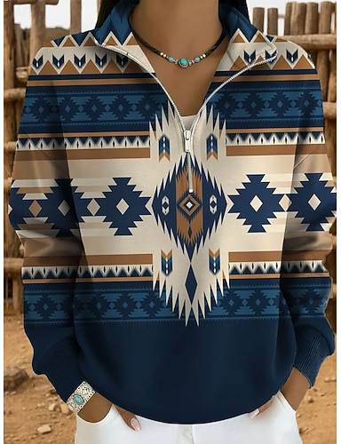 Pentru femei Hanorac pulover Fermoar Grafic Geometric Casual Manșon Lung Jumătate cu fermoar Topuri obișnuite Casual Zilnice Concediu Bleumarin Portocaliu Kaki Toamnă