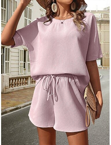 Pentru femei Seturi din două piese Seturi de pantaloni scurți Bolero Top Manșon scurt Stil Nautic Culoare solidă Cordon Elegant Modă Șic Stradă Casual Zilnic În aer liber Negru Alb Roz Îmbujorat Vară