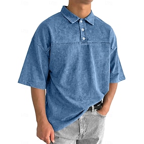 Bărbați Cămașă cu spălare acidă Tricou polo din bumbac Casual Afaceri Guler polo cu nervuri Manșon scurt Modă De Bază Culoare solidă Bloc Culoare Nasturi Spălat Vară Primăvară Primăvara & toamnă