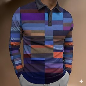 Bărbați Rampa de gradient Tricouri polo Waffle Manșon Lung Tricouri de polo Rever Îmbrăcăminte sportivă Casual Școală Îmbrăcăminte Atletică Purtare Zilnică Imprimare 3D Primăvară Toamnă Iarnă