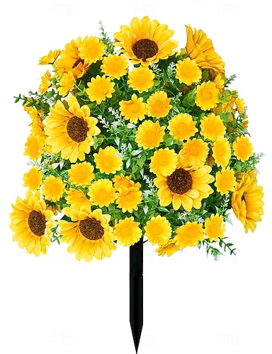 floarea-soarelui artificială &Plantă cu margarete, floare artificială în ghiveci pentru exterior de 21,65 inch cu țăruș de pământ, verdeață realistă pentru casă, grădină, terasă, decorare a podelei