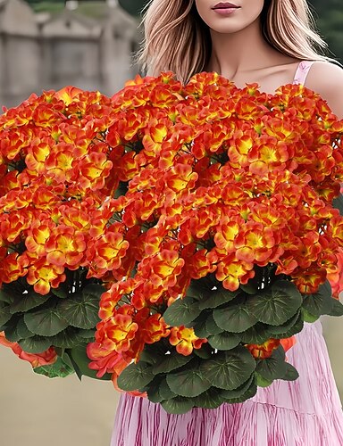 3 flori artificiale portocalii de toamnă rezistente la UV cu frunze verzi, perfecte pentru interior &decorațiuni exterioare, ideale pentru grădini, terase, nunți, ceremonii și evenimente speciale -