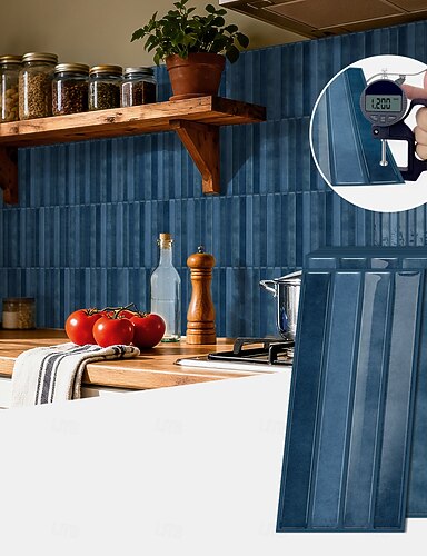 20 buc autocolant 3D autoadeziv imitație faianță, 24,6 * 12 cm, model decorativ cu bandă albastru închis, autocolant detașabil pentru perete, folosit pentru apărătoare spate bucătărie, decorare