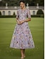 Linia -A Rochii Lungimea ceaiului Rochie de Cocktail Rochie pentru invitata de nunta Rochie Mama Miresei Manșon Jumate Stil Nautic Bateau Elegant Casual Oficial Kentucky Derby Semi formal Tulle cu