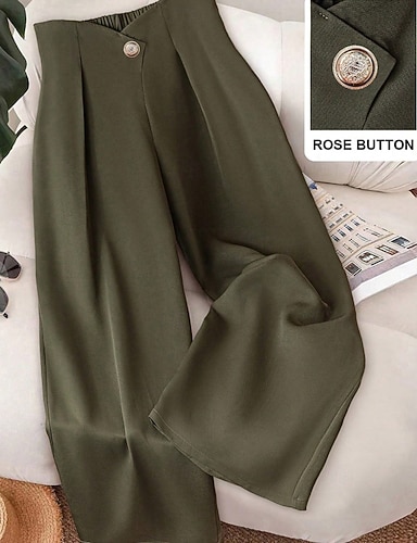 Pentru femei Femeie Pantaloni cu picioare largi Lungime totală Satin Talie Înaltă Elegant Boemia Vacanță Casual Vacanta la plaja Bleumarin Vară XS S M