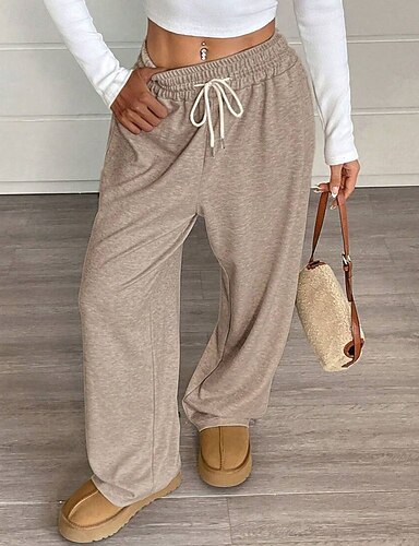Pentru femei Picior Larg chinez Vacanță Șic Stradă Casual Lungime totală Talie medie Simplu Design Elastic cu Cordon Comfortabil Strech Zilnic În aer liber Vacanță Gri Închis Negru Kaki Caisă Var