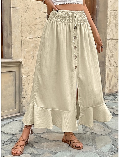 Pentru femei Fustă de vacanță Fustă din bumbac artificial și in Modă stilul bunica de coastă Casual vară Maxi Talie medie Fuste Mată Inelastic Zilnic Vacanță Negru Alb Bleumarin Portocaliu Vară
