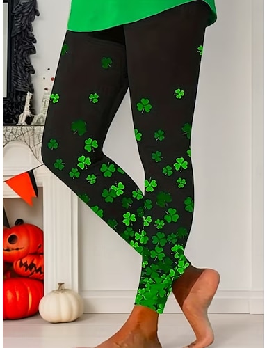 Colanți de damă de Ziua Sfântului Patrick, confortabili, lenjerie de zi, lenjerie casual, lungime completă, talie înaltă, imprimeu grafic cu trifoi, confortabili, elastici, casual, zilnic, verde, primăvară și toamnă, croială slim fit