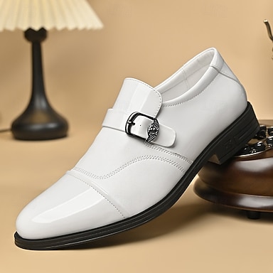 Pantofi eleganți albi din piele ecologică pentru bărbați, eleganți și sofisticați pentru nunți și ocazii speciale