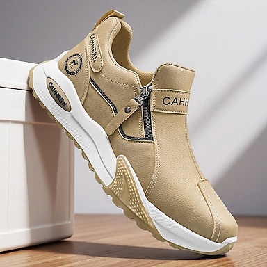 pantofi sport maro din piele artificială pentru bărbați, cu detaliu cu fermoar, talpă confortabilă din cauciuc și design casual elegant – perfecți pentru purtarea zilnică și activitățile în aer liber